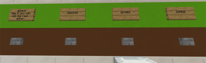 Press one of the buttons on the wall to select a level. There are three different base levels (and one bonus level) and each of them are based on a mob in-game.
